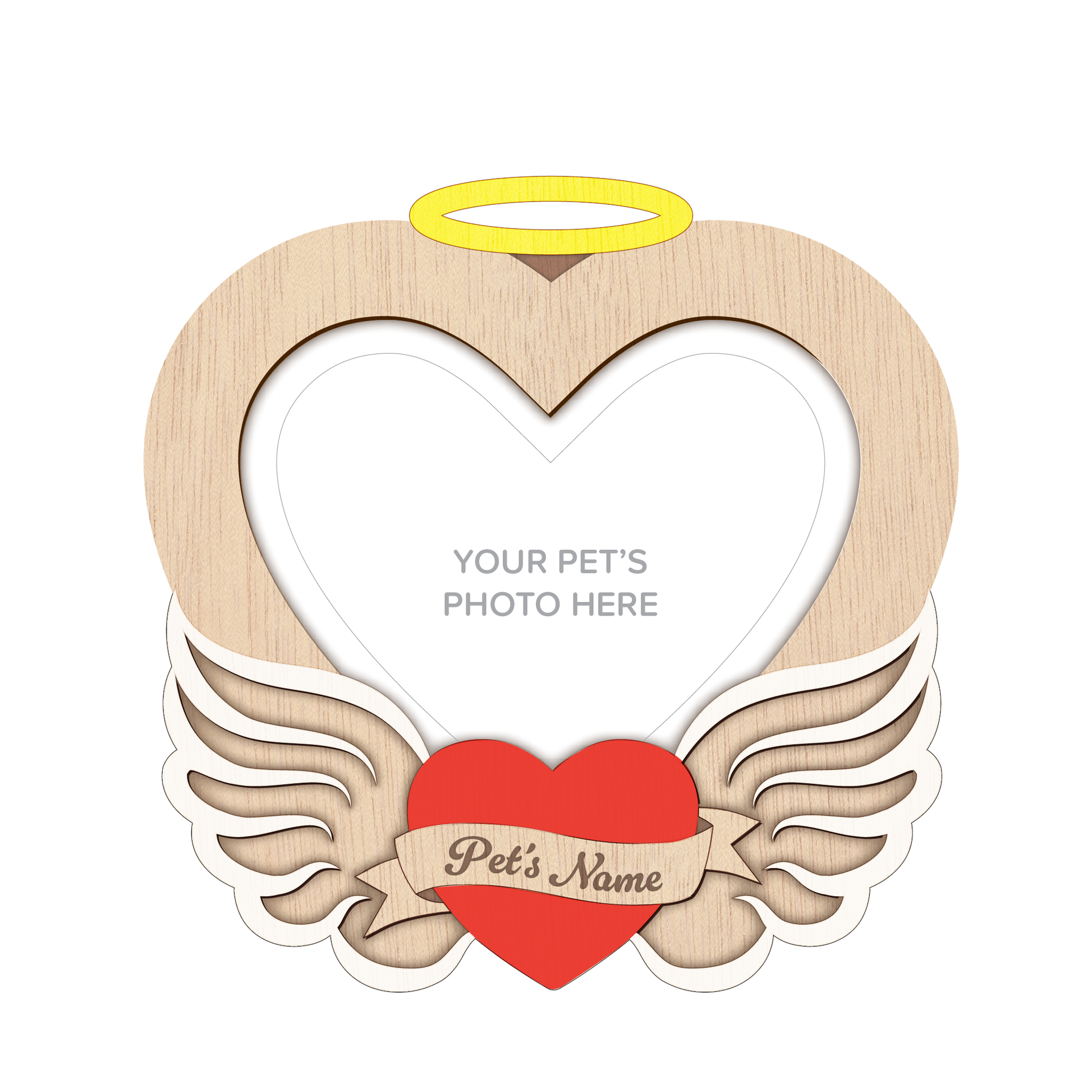 Wooden Angel Wing Heart Pet Photo Frame – Wall Hanging – Personalisable (NATURAL/RED/WHITE/YELLOW)