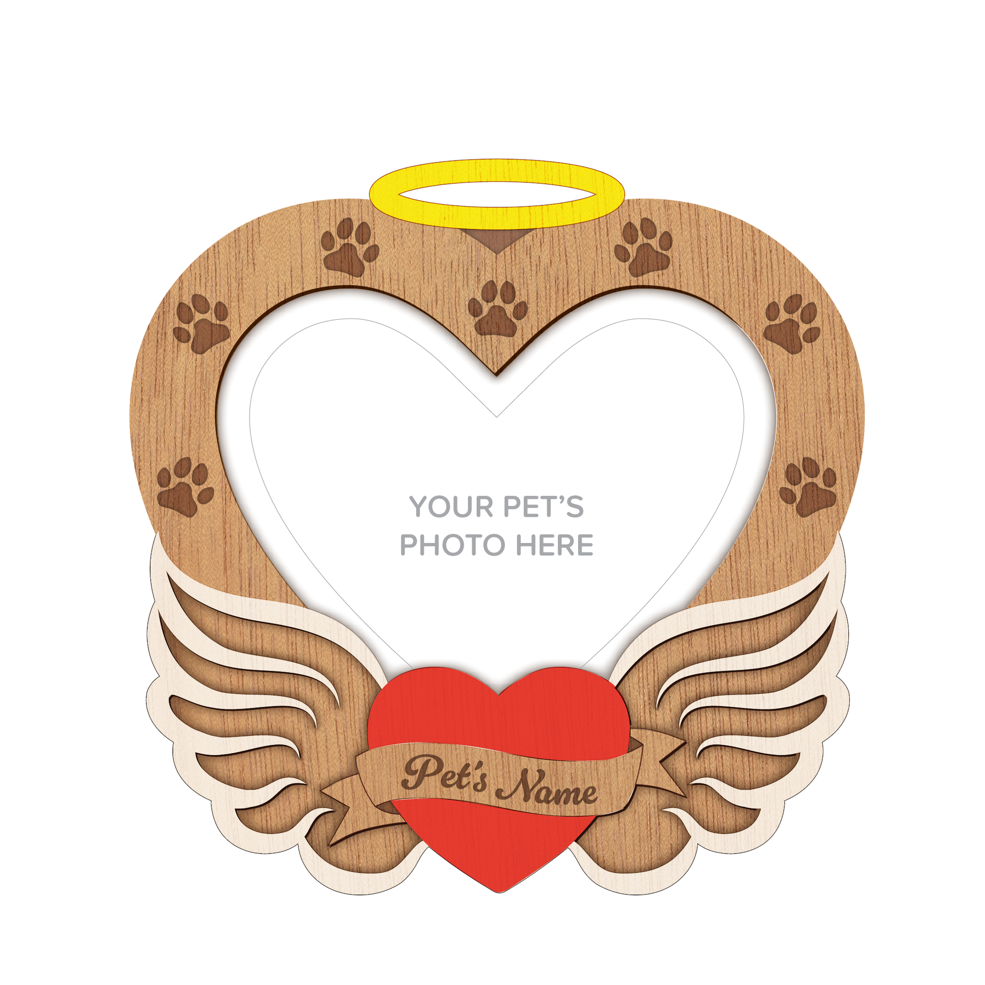 Wooden Angel Wing Heart Pet Photo Frame – Wall Hanging – Personalisable (OAK/RED/WHITE/YELLOW)