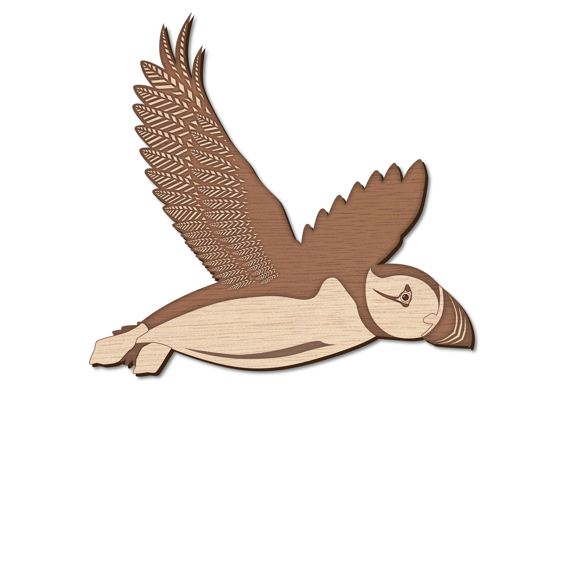Each puffin has been illustrated exclusively for Love Rosie. Our puffins are laser cut from 7mm sustainable plywood with laser engraved detail and left natural to avoid bring nasties into your home.
