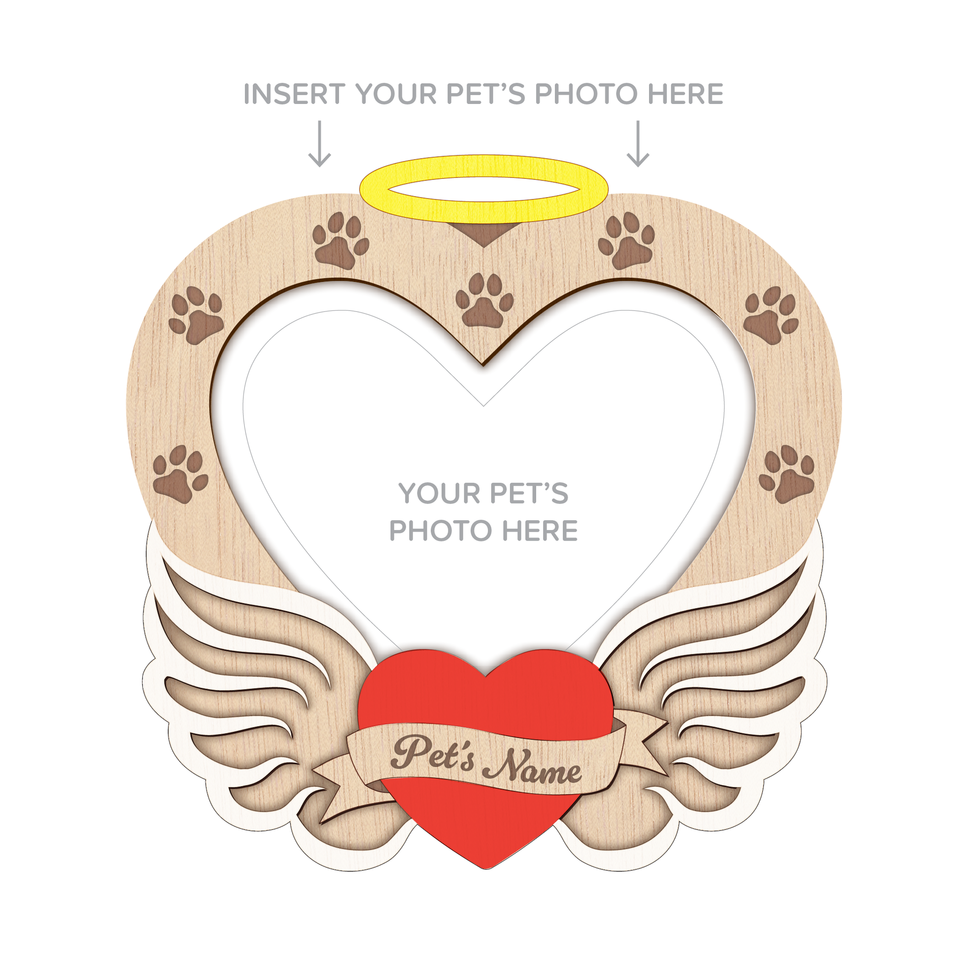 Wooden Angel Wing Heart Pet Photo Frame – Wall Hanging – Personalisable (NATURAL/RED/WHITE/YELLOW)