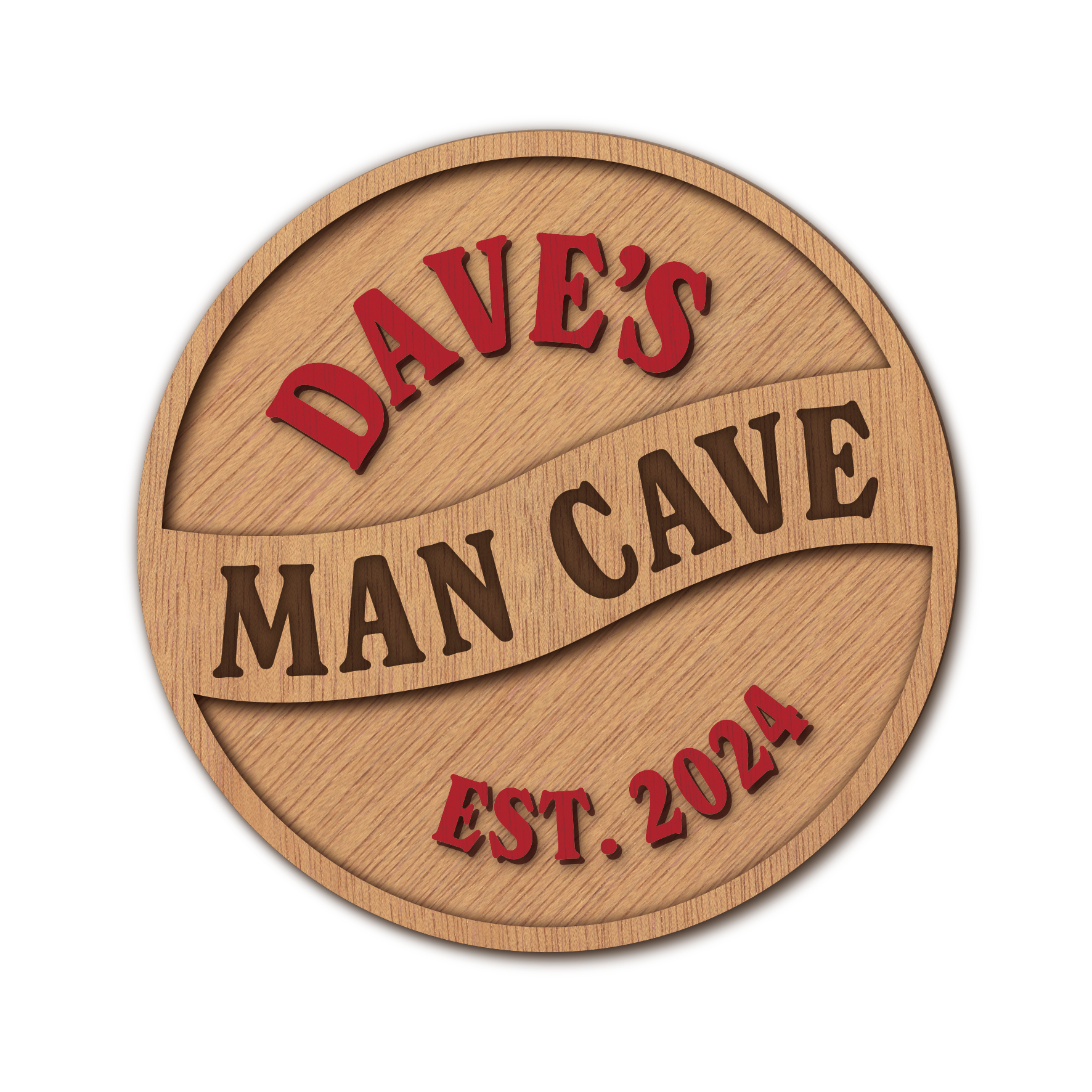 Wooden Man Cave Sign (OAK/RED) Personalised