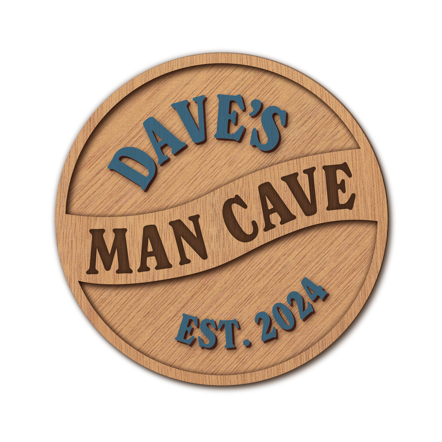 Wooden Man Cave Sign (OAK/BLUE) Personalised